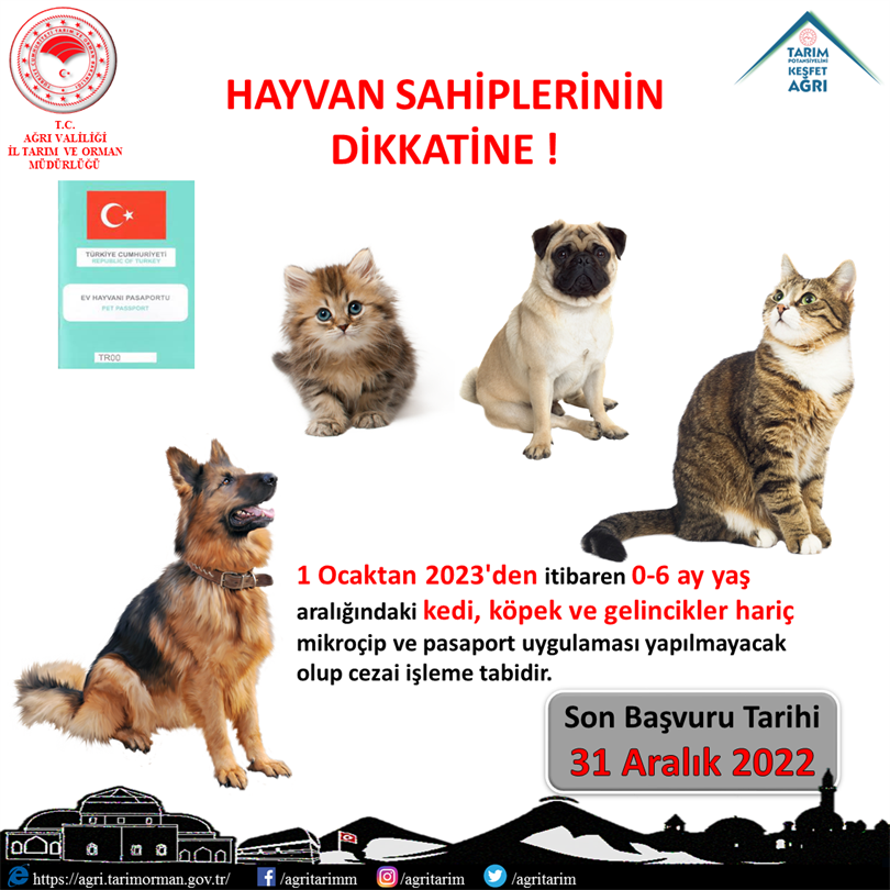 1 Ocak 2023 tarihinden itibaren yalnızca 0-6 aylık arası kedi, köpek ve gelincikler kimliklendirilecektir. 6 ay yaşından büyük sahipli pet hayvan sahiplerine cezai işlem uygulanacaktır.