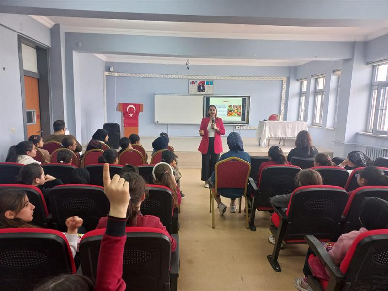 İl Müdürlüğümüz tarafından okullarda gıda güvenliği bilincinin artırılması amacıyla yürütülen eğitim çalışmaları devam etmektedir. Bu kapsamda, Şehit Uzman Çavuş Tuncer Doğan İmam Hatip Ortaokulu’nda 5. sınıf öğrencilerine yönelik “Okullarda Gıda Güvenliği ile Gıda Kayıpları ve İsrafı” konulu bir eğitim düzenlenmiştir.
